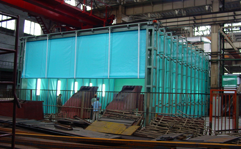 涂裝線中噴漆房?設備由室體、空調供風系統、排風及水旋式漆霧處理系統、空氣凈化系統及電控系統組成。 房體是由漆房主體、大門、鋼骨架、照明裝置、安全門、排風風道等部分組成的封閉空間,形成涂裝作業有限場所。