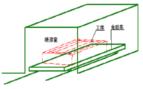 叉車涂裝生產(chǎn)線水旋噴漆室原理圖 新鮮空氣通過空調(diào)送風裝置送入室體頂部的空氣分配室,經(jīng)均流調(diào)節(jié)和過濾層后,以一定的端面風速均勻送入室體內(nèi),自上而下,將工件置入具有一定風速的均流層中,使飛濺的廢漆霧壓入水旋器處理,這樣既改善了工作環(huán)境,又保證了涂層質(zhì)量。