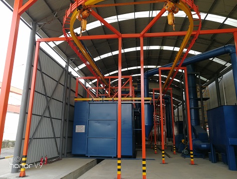 九通懸鏈通過式拋丸機具有占地空間小、結構合理、密封性能好、生產效率高、噴丸質量好、運行穩定、售后服務周全等優勢,可根據客戶實際需求設計整體拋丸解決方案!
