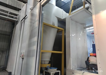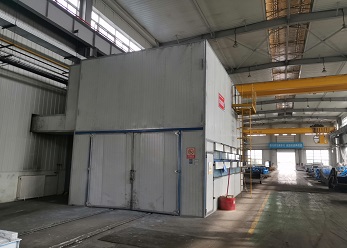 此噴涂線中工件輸送一般采用電動軌道車或天車為輸送方式。該噴涂線主要用于金屬工件、并且材質較厚、工件較大的設備、鋼板,如鑄鍛件、鋼結構件等。1噴1烘一般適合表面要求較低的設備(一般不建議采用),一般情況下,由于工件較大、重,生產量不高的情況下,噴砂(丸)、除塵都在噴砂房內處理。噴底漆、面漆、烘干都在噴烘一體房內進行。