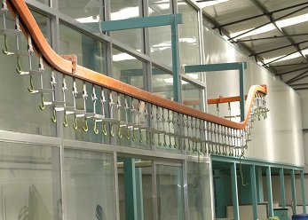 噴漆涂裝線以塑料件工藝為代表,前處理大多采用噴射式處理方式(部分金屬件采用浸漬式或噴射與浸漬結(jié)合方式),其主要目的是通過化學(xué)液體(硫酸、硝酸)以浸泡或噴射的方式,與工件表面的氧化物、油脂等產(chǎn)生化學(xué)反映來達(dá)到除油、脫脂、水洗、純水洗的目的。表面涂料為防腐油漆、色漆、清漆等裝飾性油漆材料,并且考慮塑料件高溫變形,一般采用的油漆成膜溫度為50至80℃左右,自動(dòng)輸送系統(tǒng)前處理一般采用輕型懸掛鏈和輸送帶、網(wǎng)鏈送設(shè)備,前處理后轉(zhuǎn)線一般采用地鏈滑撬、懸掛輸送鏈等輸送方式。具體需要根據(jù)工件情況決定。其主要決定因素:工件大小、形狀、重量、材質(zhì)等。