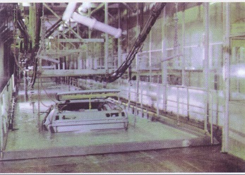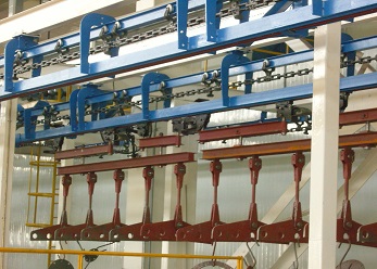 電泳涂裝線前處理大多采用浸漬式與噴射式處理方式(也可采用噴射與浸漬結(jié)合方式),其主要目的是通過化學(xué)液體(硫酸、硝酸)以浸泡或噴射的方式,與工件表面的氧化物、油脂等產(chǎn)生化學(xué)反映來達(dá)到除油、脫脂、除銹、水洗、純水洗的目的。電泳采用陰極電泳或陽極電泳,陰極電泳與陽極電泳比較,陰極電泳在技術(shù)上更成熟,其泳后漆膜附著力及防腐蝕力比陽極電泳更強(qiáng)。泳后裝飾涂料可采用噴朔或裝飾性油漆。自動(dòng)輸送系統(tǒng)前處理一般采用自行葫蘆或積放式輸送設(shè)備,前處理后轉(zhuǎn)線一般采用地鏈滑撬、懸掛輸送鏈、總行葫蘆等輸送方式。具體需要根據(jù)工件情況決定。其主要決定因素:工件大小、形狀、重量、材質(zhì)等。